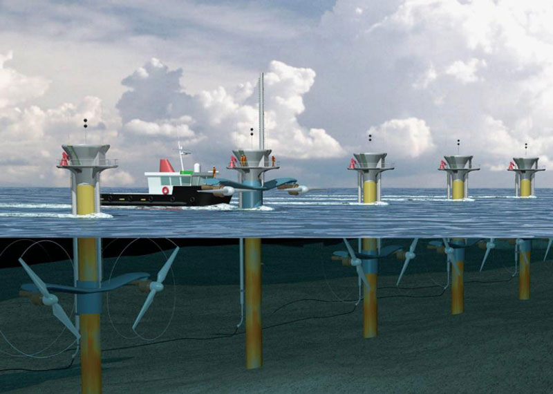 Ожидается, что промышленная модель генератора, оснащенная винтами диаметром 7 м, даст выходную мощность 543,6 кВт при скорости потока воды, равной 4 м/с.